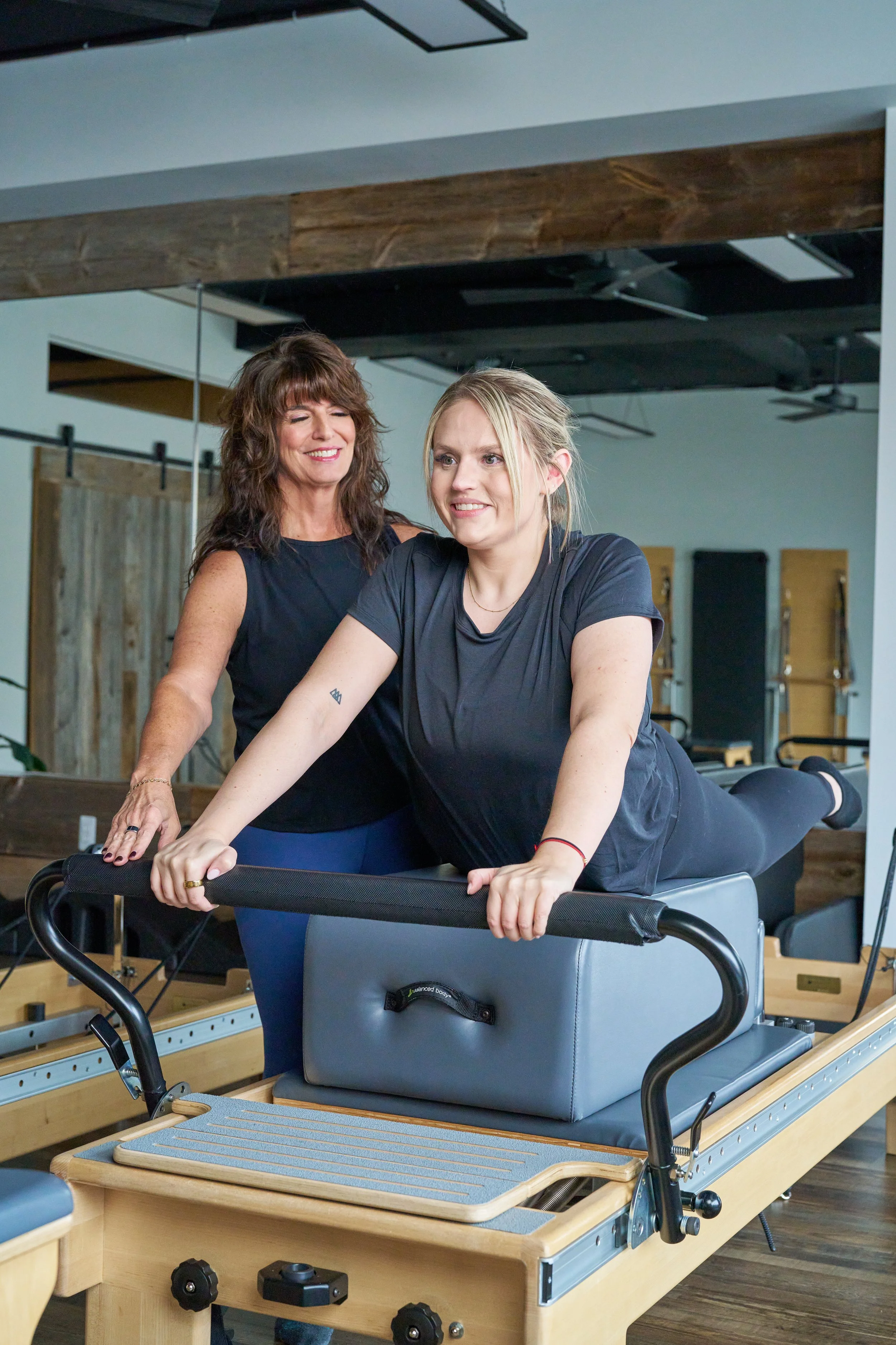 We use Balance Body Reformers, Towers, Chairs, Pilates arcs, and the Springboards, jumpboards, and of course, the mat! We love our props too, we believe these add a challenge and also help assist at times. These include Pilates rings, bars, balls, bands, and free weights.
